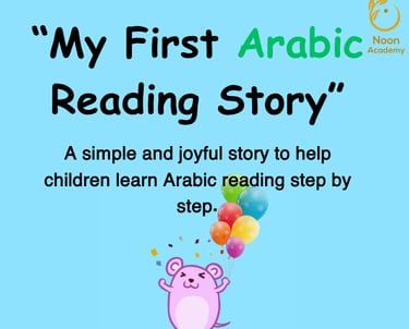 A free Arabic reading book from Noon Academy helping children learn to read Arabic letters with joy and confidence. 🌿